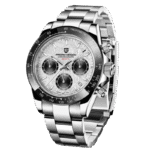 Reloj cronógrafo Pagani Design PD-1644 en acero plateado con esfera negra.